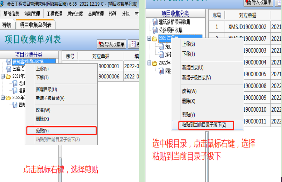 項目收集分類建好后,如果需要移動項目分類,可以通過點擊鼠標右鍵,選擇[剪貼][粘貼]來移動,具體操作如下圖: