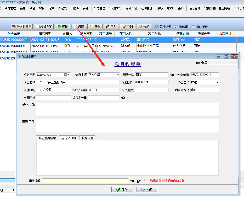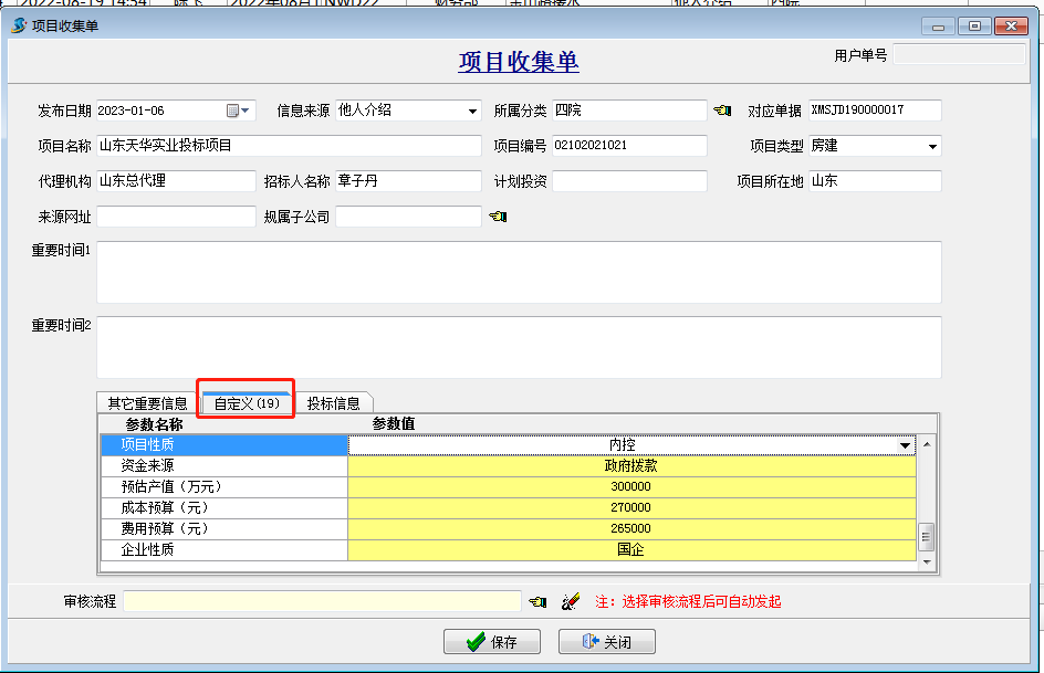 選擇審核方案,保存【項目收集單】。審核后的項目,可以用來進行項目體投標。