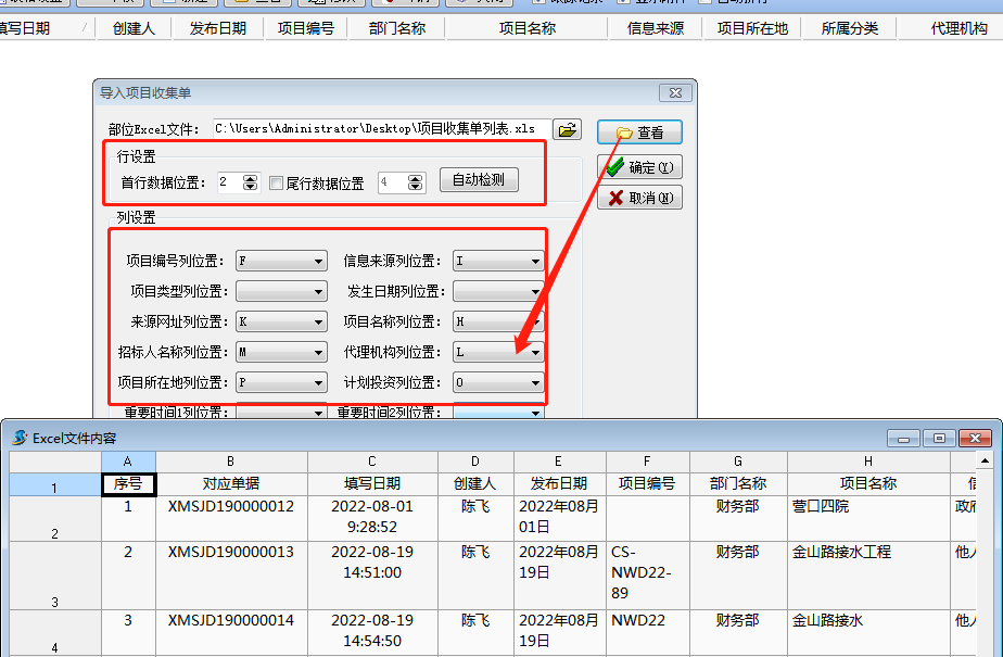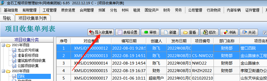 如果一次性需要錄入多條項目信息,可以直接使用導入功能,導進項目信息,如下圖: