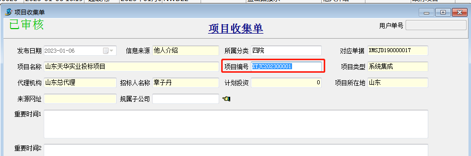 【項目收集單】項目收集單是用于收集市面上適合自己投標的項目信息的,銷售人員可以把收集到的項目信息錄入到單據里面,并定期填寫跟蹤記錄。單據入口: