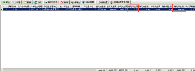 4還回-投標保證金投標保證金還回給掛靠單位。項目開拓中會提示“待還回金額”。如圖所示: