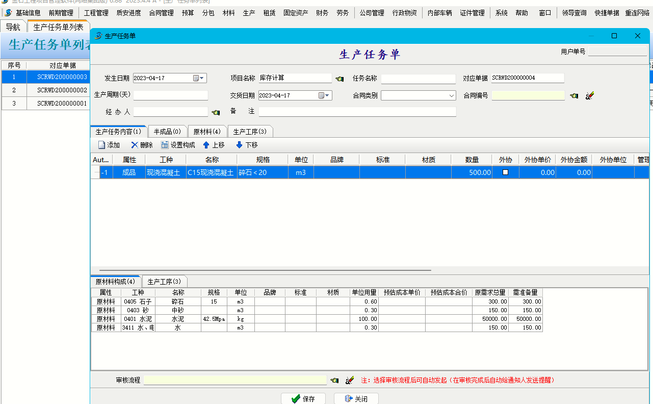 生產(chǎn)任務(wù)單填寫完成后可以交由采購購買原材料。采購原材料流程參見1.7、材料采購單