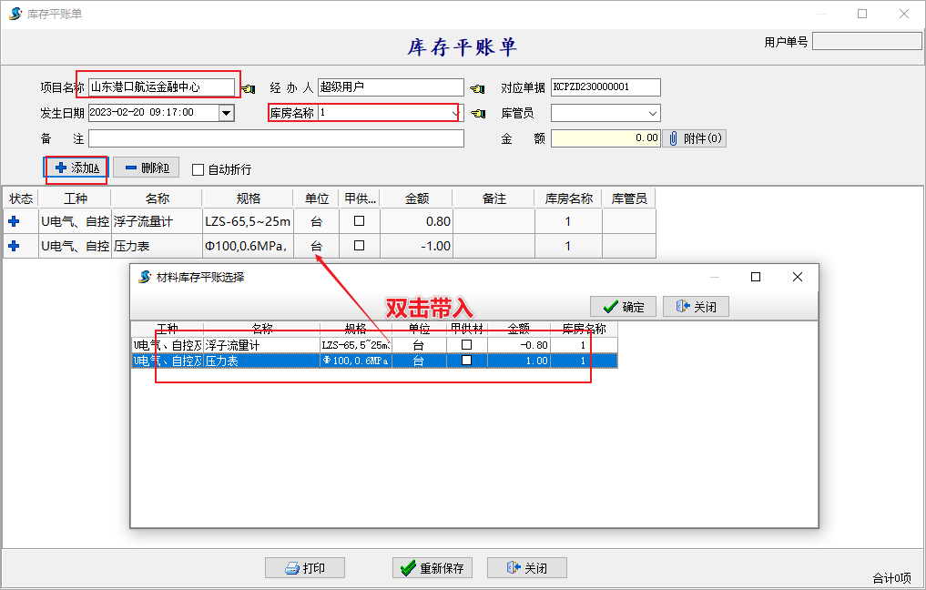 材料管理中新增【庫存平賬單】。【庫存平賬單】用來對庫存中結余數量為0但結存金額不為0的數據做平賬處理,即把金額歸零。如下圖所示,結存金額為非零數據,