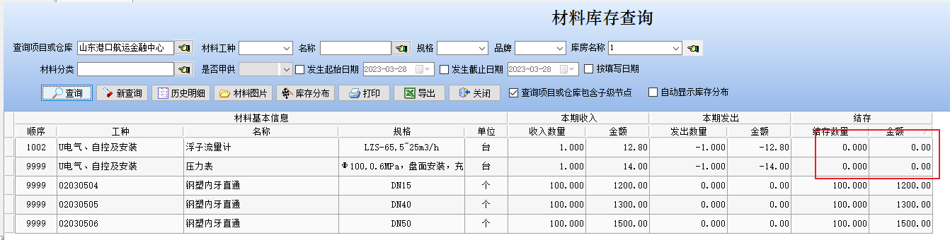 最后點擊保存按鈕,此時我們再去庫存查詢中查看結余情況,如下圖所示,會發票金額歸零。