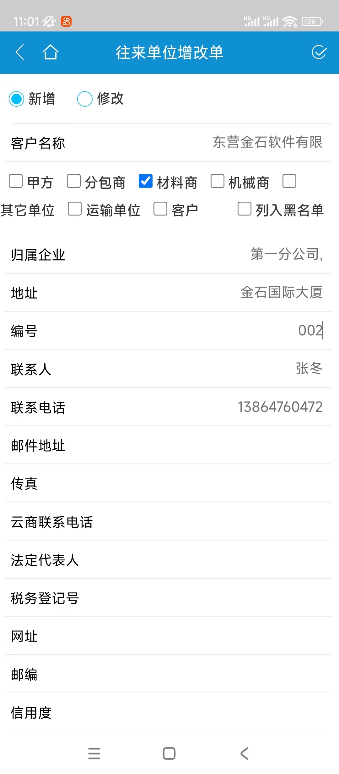 在基礎信息中添加往來單位增改單