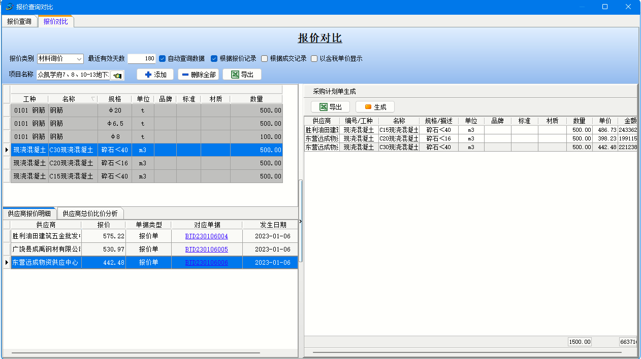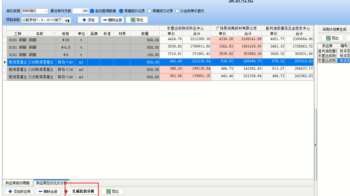 【報價查詢對比】可以對報價信息進行查詢還可以實現比價功能并直接生成采購計劃單