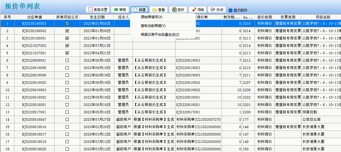 在【報價單】點擊新建選擇根據云商平臺批量生成。