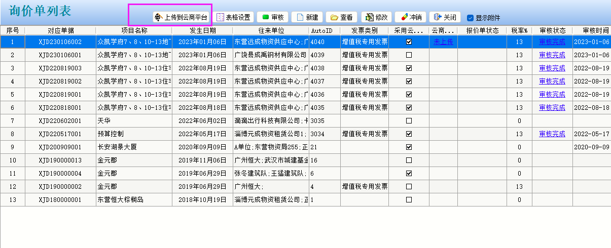 保存審核后,在詢價單列表點擊上傳到云商平臺。
