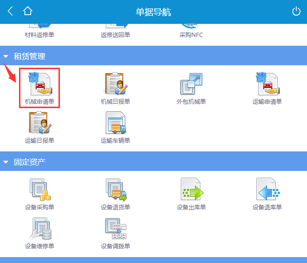 | 租賃合同 | 機械申請 | 機械預算 | 機械日報 | 機械結算 | 運輸申請 |