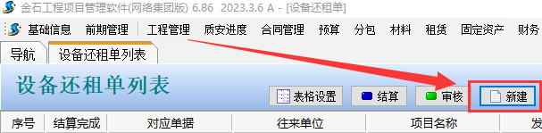 單據(jù)用法:【設(shè)備還租單】列表[新建]單據(jù)