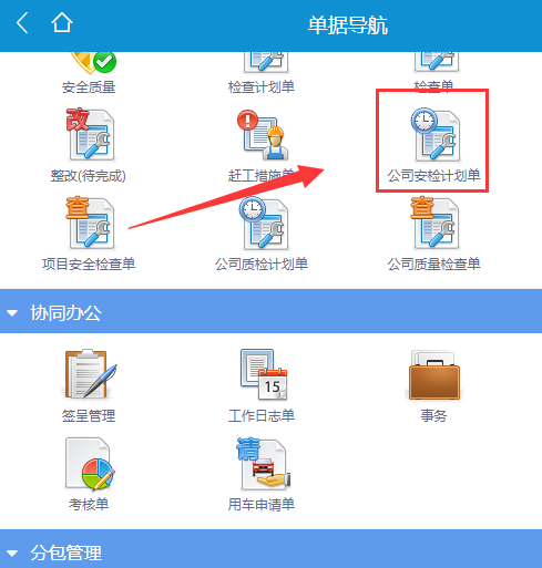 手機(jī)端單據(jù)入口:手機(jī)端主界面【單據(jù)填寫(xiě)】中【檢查計(jì)劃單】1.12日