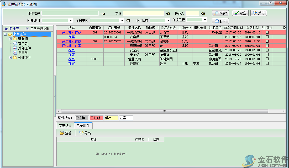 系統會羅列當前已收錄的所有證件,需要注意的是,證件只有在案狀態才能被借出,如已處于借出狀態,則無法進行選取。